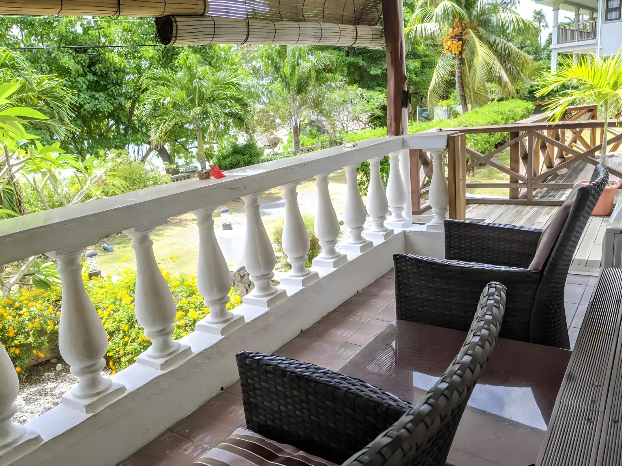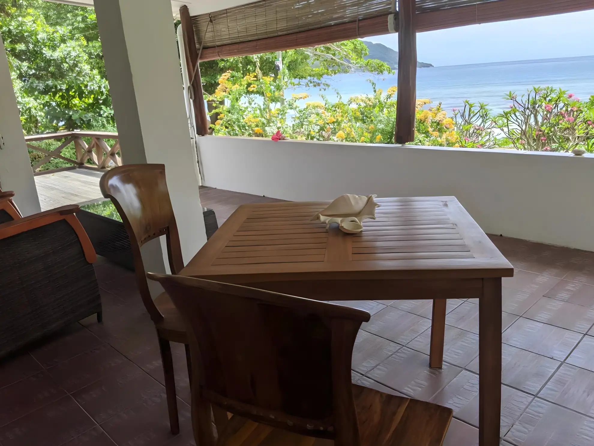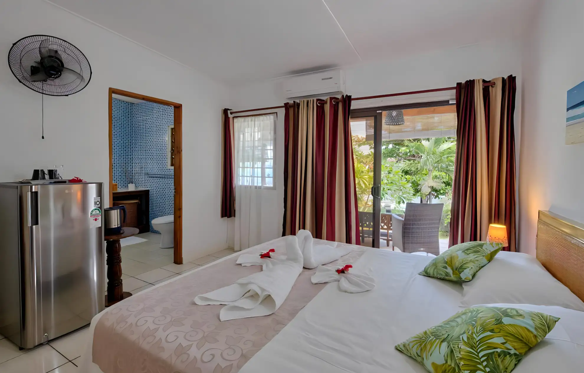 The rooms at The Beach House are a testament to the property's commitment to offering exceptional comfort and style. Furnished with locally sourced calice-de-pape wood, each room exudes an elegant and inviting atmosphere. Guests can indulge in the spaciousness and comfort of a large double bed and enjoy the convenience of an en suite bathroom with a shower and toilet. Additionally, a refrigerator is provided for the storage of refreshments and snacks, ensuring that guests have everything they need for a delightful stay. The apartments are air-conditioned and offer stunning views of the lush gardens, the glistening sea, or a partial sea view, allowing guests to choose the perfect backdrop for their getaway.
