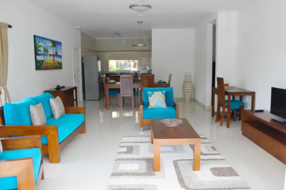 Unsere luxuriösen Ferienwohnungen sind geräumige 150 Quadratmeter groß und nur einen kurzen Spaziergang vom Strand Anse Kerlan entfernt. Jedes der drei Apartments verfügt über zwei Doppelzimmer mit eigenem Bad, eine voll ausgestattete Küche und einen gemütlichen Wohnbereich. Für Ihren Komfort finden Sie sowohl Ventilatoren als auch Klimaanlagen. Jedes Apartment verfügt außerdem über einen eigenen Balkon zum Entspannen. Zu den weiteren Annehmlichkeiten gehören eine private Küche, ein gemeinsamer Grillbereich, ein Platz zum Reinigen von Fischen, einfacher Zugang zu nahe gelegenen Stränden, kostenloses WLAN, umweltfreundliche Toiletten und elektrische Duschen.