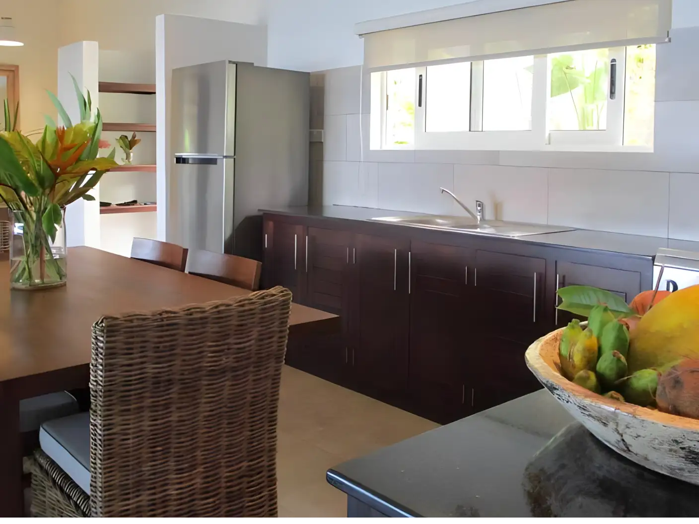 Unser 50 m² großes Studio Cocos ist eine intime Oase mit einem extragroßen Doppelbett. Dieses klimatisierte Studio ist ideal für Paare und bietet eine überdachte Veranda, auf der Sie einen atemberaubenden Meerblick genießen können. Das Studio ist mit einem geräumigen Badezimmer, einer Küche und einem Standventilator ausgestattet und sorgt so für einen komfortablen und angenehmen Aufenthalt.
