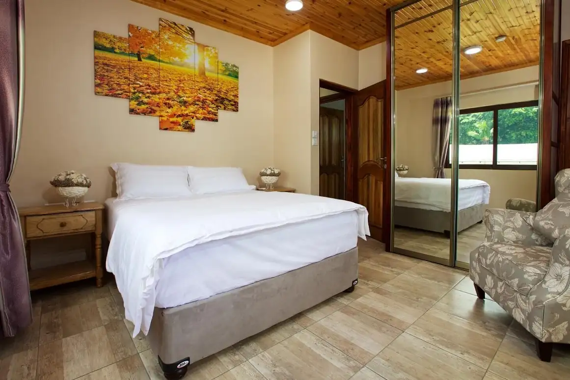 Unsere Apartments sind mit modernen Annehmlichkeiten ausgestattet, die Ihren Aufenthalt noch angenehmer machen. Ein Flachbildfernseher mit Satellitenkanälen sorgt für Unterhaltung und kostenloses WLAN im gesamten Gebäude sorgt für Konnektivität. Für alle, die gerne im Freien kochen, bieten wir Grillmöglichkeiten, auf denen Sie ein köstliches Festmahl zubereiten und dabei das angenehme Wetter der Seychellen genießen können.