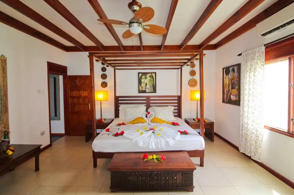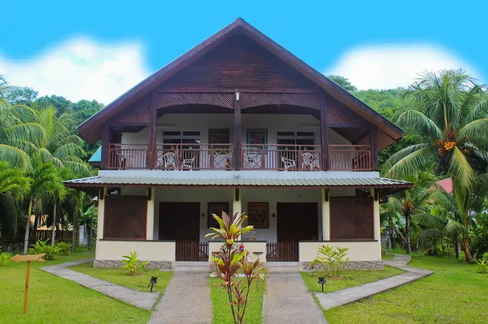 Mit seinen geräumigen, in beruhigendes Licht getauchten Zimmern bietet dieses charmante Gästehaus einen idyllischen Rückzugsort für Paare und Familien, die Ruhe inmitten der immergrünen Wälder suchen. Erleben Sie den Insel-Lebensstil hautnah, während Sie die exotische Fauna und Flora zu Fuß oder mit dem Fahrrad erkunden, oder entspannen Sie einfach, schwimmen und schnorcheln Sie an der nahegelegenen Anse Takamaka, die nur 500 Meter entfernt liegt.