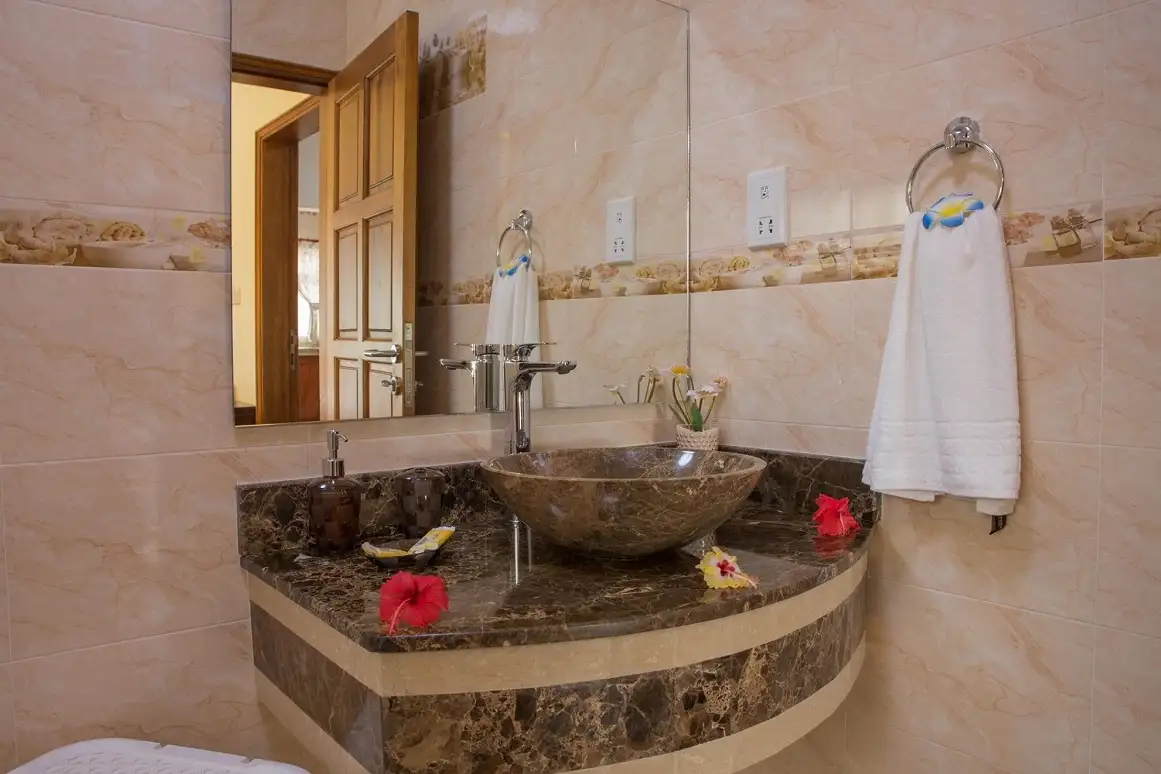 The villa comprises eight spacious rooms designed to cater to different preferences. Choose from the Garden View Room, Seaview Room, Seaview Room with Balcony, and High Floor Double Room. Each room is thoughtfully furnished with modern amenities, including air-conditioning, ensuite bathrooms, satellite TV, telephone for local calls, and complimentary Wi-Fi, ensuring a comfortable and convenient stay at the villa.