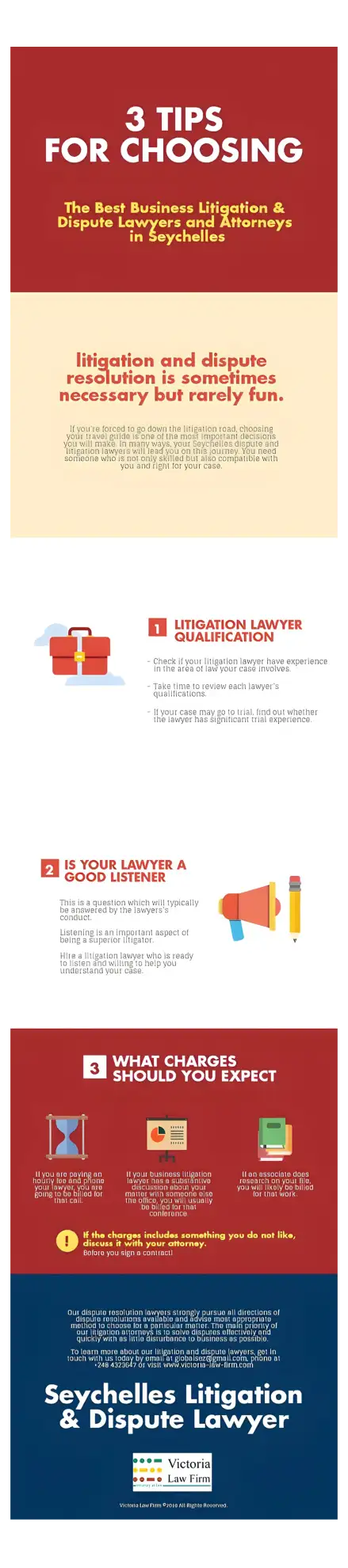 «Founded in 1996, Victoria Law Firm is one of the leading law firms in Seychelles and provides legal services on multiple areas including immigration law, corporate law, personal injury law, asset law, tax planning, and real estate law.»