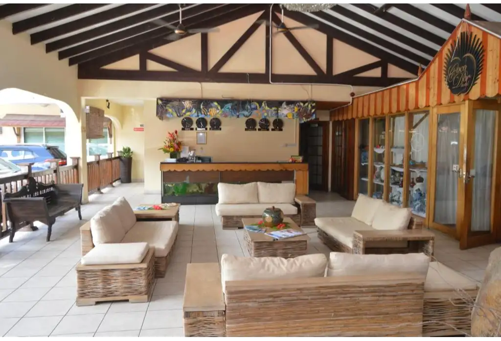 À l'arrivée, les clients sont accueillis par le personnel amical et multilingue de l'hôtel, qui leur offre une boisson rafraîchissante et une serviette froide, préparant ainsi le terrain pour une expérience relaxante et agréable. Les salons blanchis à la chaux ornés de poutres en bois apparentes dégagent une ambiance aérée et accueillante, et ils mènent à un jardin tropical qui entoure une piscine attrayante.