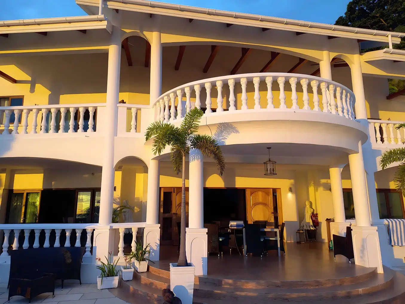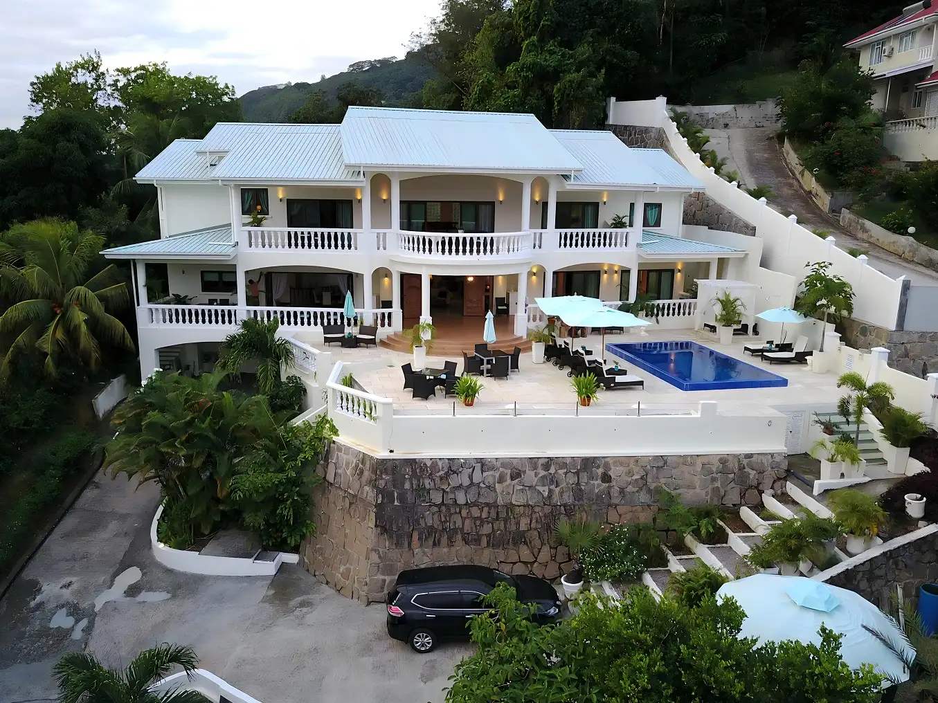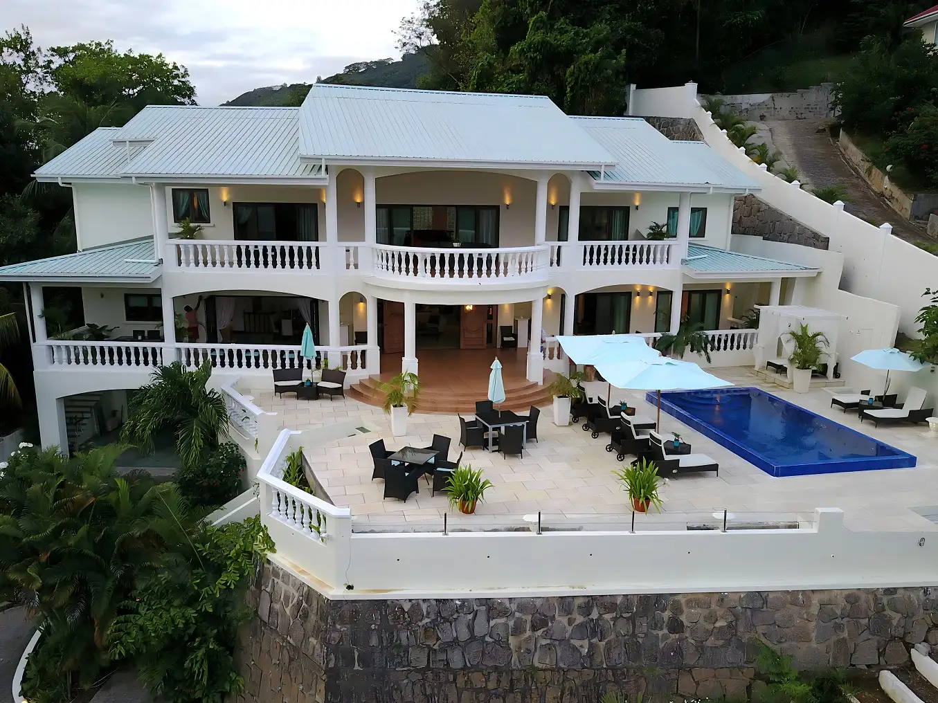 La propriété entièrement climatisée s'étend sur une superficie impressionnante de 7 500 pieds carrés et comprend cinq chambres doubles/twin, chacune accompagnée de sa propre salle de bain privée. En entrant dans votre chambre, vous serez accueilli par un balcon ou une terrasse spacieux orné de sièges confortables, vous invitant à vous détendre et à vous imprégner des vues exceptionnelles sur les environs, qu'il s'agisse de l'océan envoûtant ou du paysage à couper le souffle.